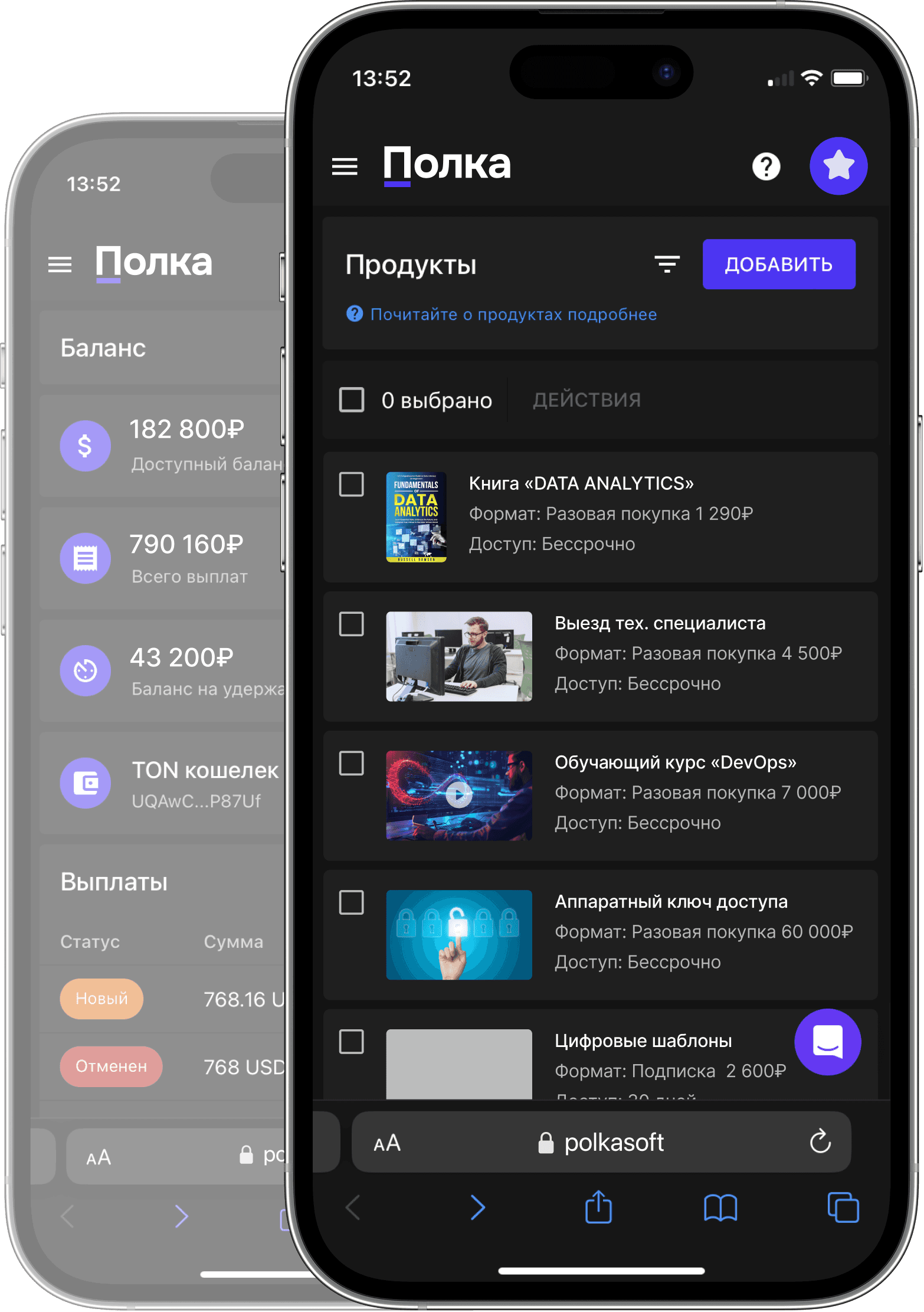 Клиенты оплачивают, а Полка автоматически выдаёт доступ и фиксирует продажу